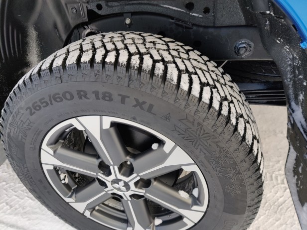 Koeajoautoon on alle laitettu Continental IceContact 2-renkaat (265/60 R18) Mitsun omille tyylikkäille alumiinivanteille. Nämä renkaat ovat selkeästi valittu autoon sen takia, että tämän tyyppistä työautoa miettivät, potentiaaliset asiakkaat eivät ole niitä, jotka suuntaavat stokkalle syyssateella ostamaan makupalettia hellivää Musanki-eläimen paksusuolen läpi kulkeneista kahvinpavuista tehtyä mokkaa. Ei. Tämän auton asiakasprofiilin kuuluvat ne ihmiset, jotka ovat pannukahvin vannoutuneita kuluttajia.