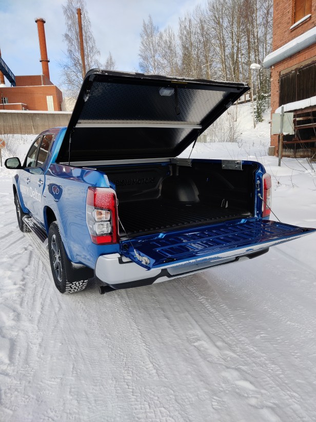 Kun hain auton koeajolle Tampereen Delta-autosta, oli se helppo bongata koeautojen rivistä. Sen profiili ja luonteikas ilme kertoo auton olevan tosissaan ja valmiina lähtemään valloittamaan toinen toistaan haastavampia työmaita riippumatta siitä missä ne sitten sijaitsevatkaan.